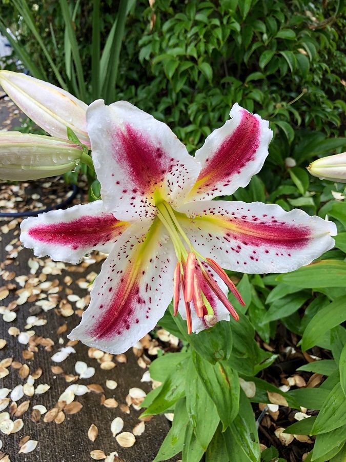 小さめのユリということでしたが、開き方が大きくて、バラでいうところのシャローカップみたいな感じになるので花そのものが小さいっていう感じはしません。「ロースリリーイザベラ」背丈は他のローズリリーより伸びたんですが花は小さかったです。ローズリリーってもうなんだかユリっていう感じではなくて別物ですね~。いいんだかどうなんだか。。本来のポテンシャルは発揮できていなさそうな「スノーボード」。でもとても美しい!ローズリリーよりもこっちのほうが好きだな。来年も咲いてくれるといいけど。雨なので今咲いてるユリも切ってしまおうかと思ったけれど切った後の始末に困るのでやめました。お墓に飾っても雨だからなぁ。。いままでにかなりの数のユリをひとさまにも差し上げたけどなんかもう持っていくのも面倒になったwどうしよう、雨に打たれて痛んでももったいないから人にあげる?こんなに咲かせるために頑張ったのに人にあげるのはもったいない?どっちだと思いますかw励みになりますので応援よろしくお願いしますm(__)m ↓ ↓ ↓ ↓ ↓にほんブログ村 にほんブログ村