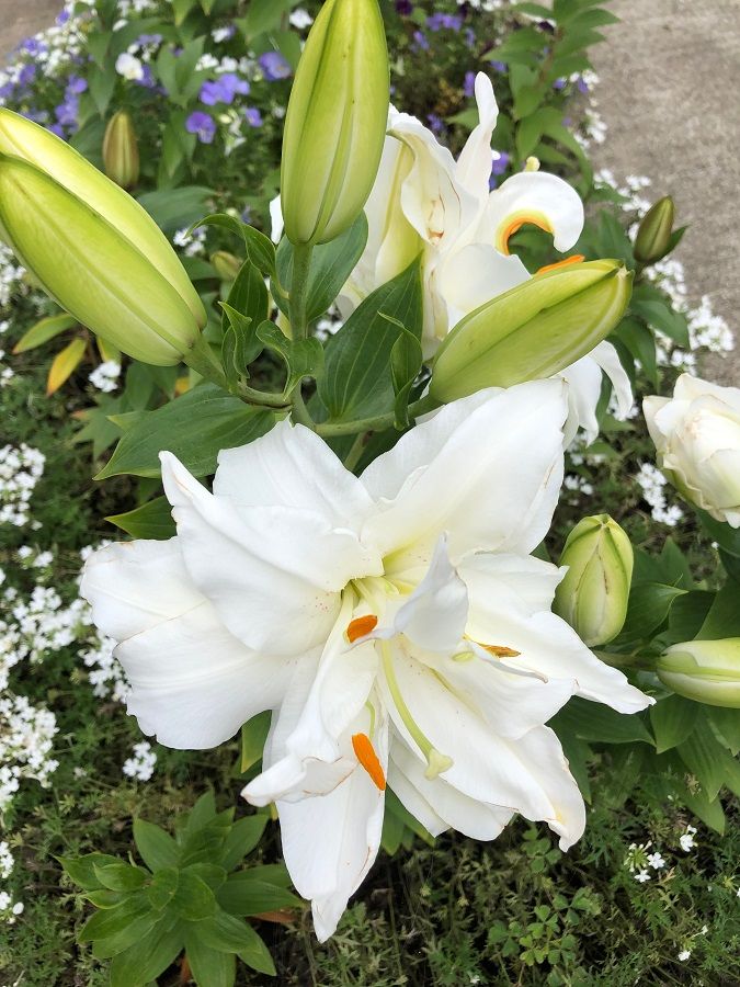 でもなんか違う気が。。非常に美しくて香りもいいのですが。サカタのタネさんから画像をお借りすると完璧形はこんな感じ。う~ん、やっぱりなんか違うwで、ほかの場所で咲いていた、同じく「スノーボード」という名札の立ったユリ。これは完全にスノーボードではなさそう。どうみてもダブルカサブランカ「ホワイトアイズ」だなぁ。どこで間違ったんだろう。で、6月13日に買った、ホスタ「ロイヤルスタンダード」。う~ん、こんな紫一重の花で正しいのか。「白い大輪の芳香花」ということで買ったのですが。成熟すると白くなって芳香が漂う花になってくれるのでしょうか?ネットで見ると確かにこういう紫色みたいな花の画像もあるけれど同時に買った、「サムアンドサブスタンス」というホスタの花は白かったんです。そちらこそ紫っぽい花が正しいような気が???これはタグ間違いか?と思って、なんだかどうしても調べたくなって購入先のHCに持って行ってみました。ま~正直言って店員さんでもわからんよなぁとは思いつつ一応、メーカーさんに問い合わせてくれることになったのだがどうでしょ?それよりなんよりショックだったのは現物持っていって見せて、車に積めこんだら鉢がぽろっと割れたこと。ついてません。。。関係ないけど友達からもみ殻を大量にいただいたのでなかなか使い道に困って鉢の土に混ぜているのだけれど稲がどんどん生えてくるんだよねw最初は単なる雑草かと思っていたけれどやっぱりこれは稲だよね。励みになりますので応援よろしくお願いしますm(__)m ↓ ↓ ↓ ↓ ↓にほんブログ村 にほんブログ村