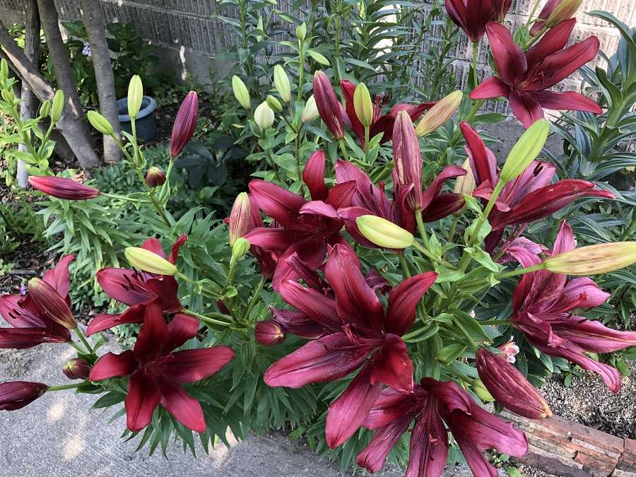 こちらはう~んと、名前が出てこないしょんぼり赤くて花もちがいいということで買ったのだけれど、そんなに花もちがよくはなかったな、と以前書いたユリなんですが。。レッドなんとかかな。→→→レッドツインですね!これはこんなにたくさん植えた覚えはないのでかなり増えたようです。