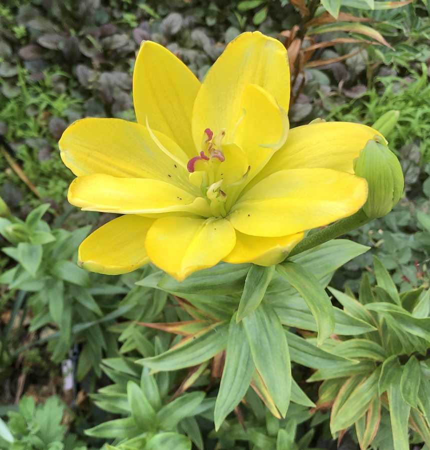 こちらは八重のユリみたいだけれどなんだろうなぁ。こんなところに植えたかな?と思うようなところで咲いているのが不思議。イエローベリーズかな?