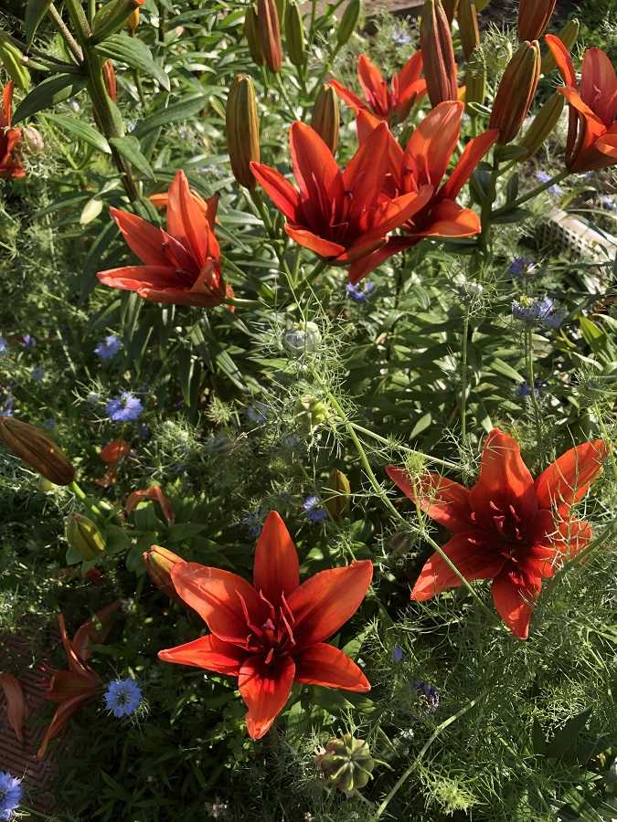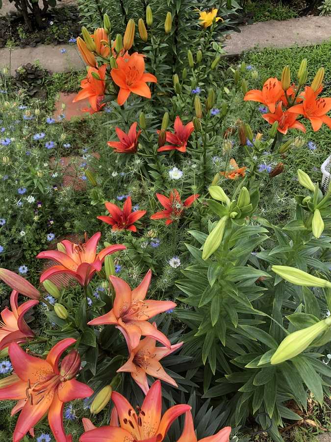 よく増えるので、庭のいたるところに咲いている感のあるロイヤルサンセットとその他スカシユリが咲いています。