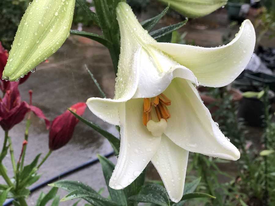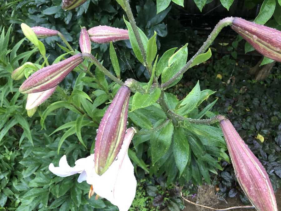さて、豪雨の中、咲いていたのは白いホワイトエレガンス。うちには2本くらいしかありません。ふえないですね。