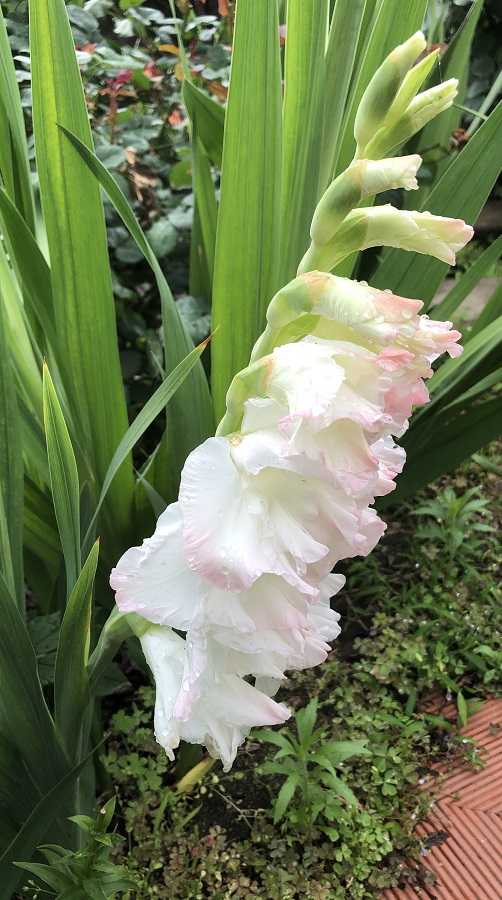 グラジオラスの初夢。庭のあちらこちらで葉っぱを伸ばしてきます。そんなところに植えた覚えないわっていうところから生えてくる。なにかの拍子にとっても小さい分球がこぼれていくのかな。草取りしてるときにばらまいちゃうのかな。日本でできた品種らしいのですが強健なのね。ただ、この色のせいか、スリップスがけっこうつきます。それが難点。グラジオラスは下のほうから少しずつ花が開いていくものもあれば、この品種のようにある程度一気に花が開いてくるものもありますね。