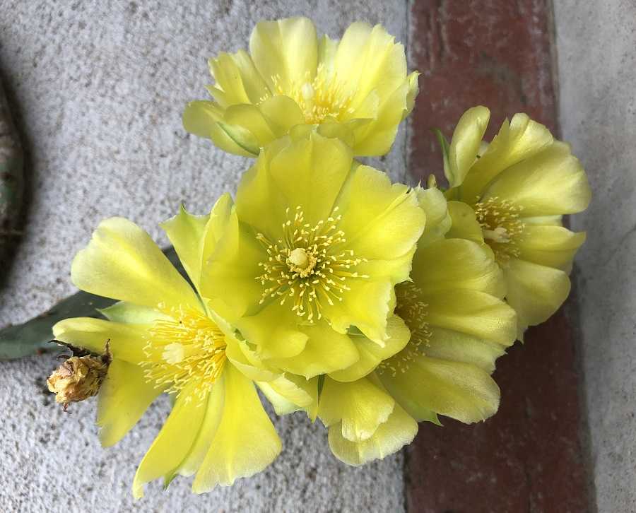 バラ友さんちで「ウチワサボテン」という多肉植物をいただきました。帰って調べてみたらすごく大きくなるらしいので、小さな鉢で育てようと思います。私は不用意に触ってしまったので、細かいトゲが刺さってとても痛かった!花はとても繊細で綺麗ですね~