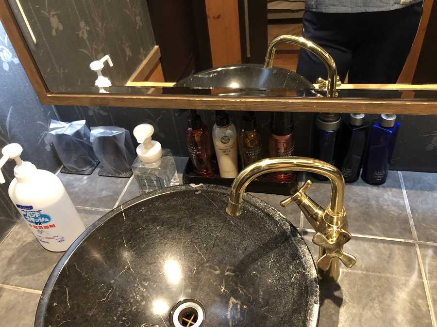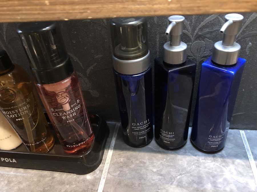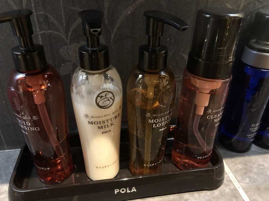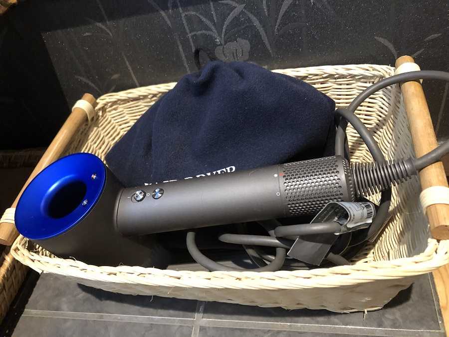 洗面所にはダイソンのドライヤー。使うの初めてだなぁ。化粧品、浴用品はPOLA製品でした。