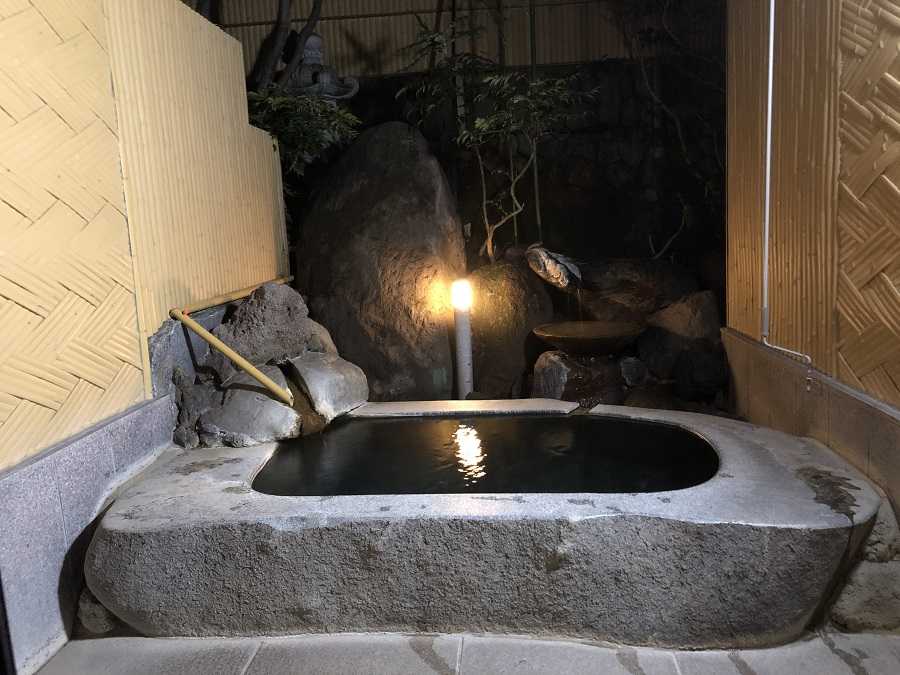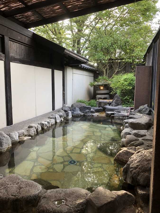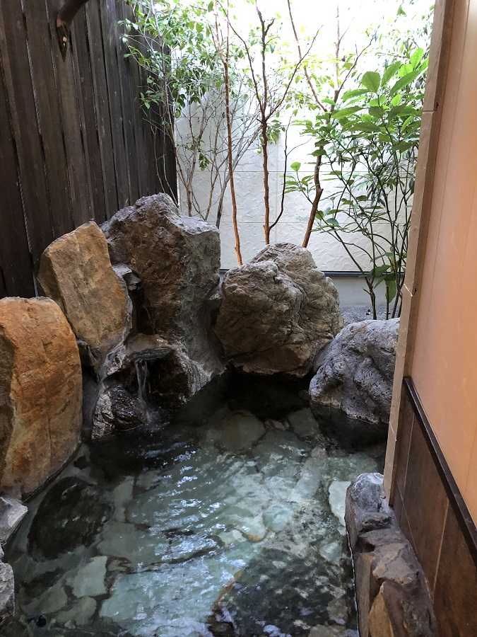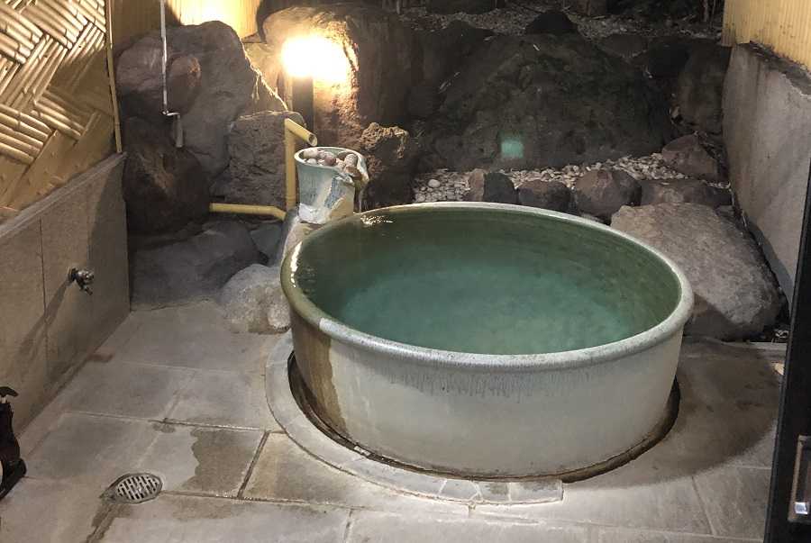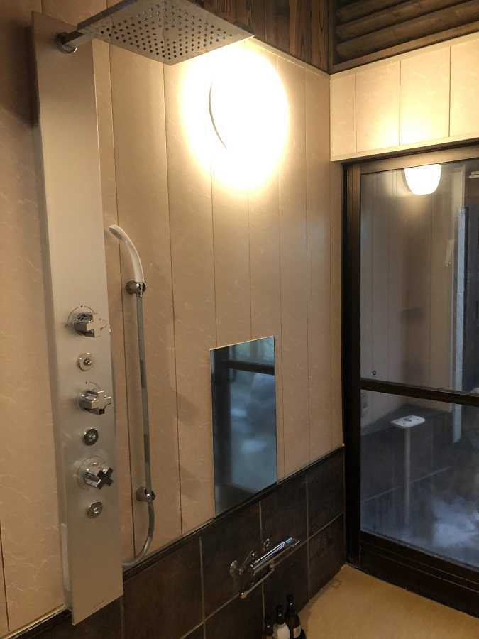 露天の前室はシャワールームです。温泉内にはジャグジー?も。