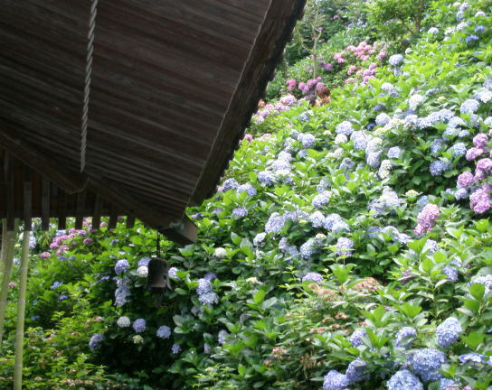 斜面を覆うように紫陽花が咲き誇り、長谷寺の輪蔵とのコントラストが素敵でした。この輪蔵の説明をよんで、私も1周回してみました。これで、幸せになれればいいんだけどね