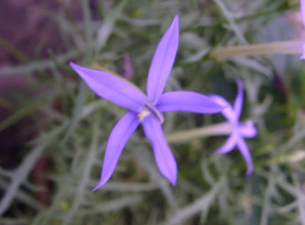 カンパニュラのアルペンブルーです。カンパニュラの花言葉は、「感謝・大望・抱負・不変・貞節・誠実・思いを告げる・後悔・うるさい」です。いろいろあるけど、「思いを告げる」がいいですね。