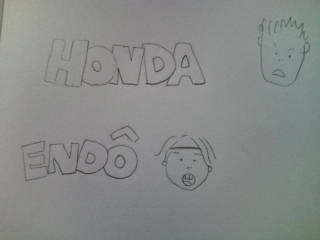 寝ていたら、カズとミンミの歓声で目覚めました。 本田と遠藤のフリーキックで、2-0になったらしい。 やったね! 二階で子供たちが観ていたのですが、 一階で寝ていた私と主人も目覚め、 後半は一階でみんなで観てます。 ミンミが描いた似顔絵です。 似てるかな?