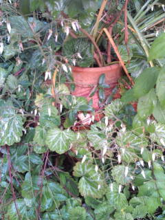 うちの花です。 1枚目、酔芙蓉。 2枚目、小えび草。 3枚目、白妙菊。 まだ蕾ですね。 4枚目、雪の下。