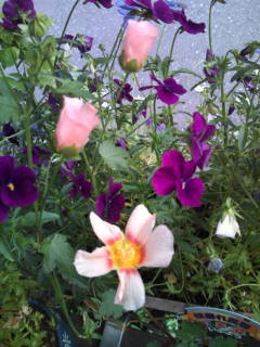 今日は出張先から直帰したので、早く帰れました。戻ったら、また残業だものね。久しぶりに水やり。もう、しおれていました。回復したところを写真にパチリ。1枚目、名前を忘れてしまった。葉が白い毛に覆われてます。2枚目、酔芙蓉。3枚目、小えび草。4枚目、白妙菊。5枚目、イソトマ。6枚目、ロベリア。7枚目、スイートアリッサム。8枚目、メキシコ万年草。9枚目、名前が分からない野草です。でも、可愛いですよね。