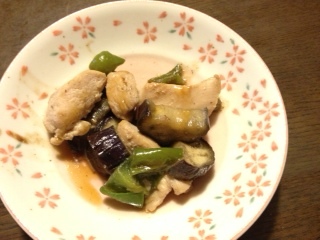 今日の夕食は、焼き鳥丼だけど、おかずとご飯は別にしました。茄子とピーマンも。南瓜のコンソメ煮。卵豆腐。つみれ汁。