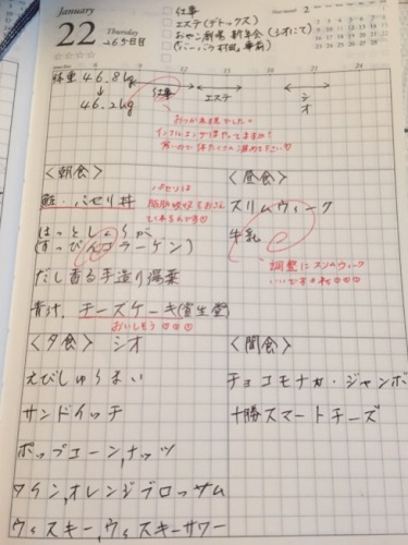 仕事の後、スリムウィークと牛乳で昼食にして、そのままエステに行きました。体重は昼食後・エステ前で46.8kgに減っていて、エステ後も46.2kgと0.6kgも減りました。エステ・デトックスコースだったからかな。なんでか急に痩せましたね・・・まあ、リバウンドした分、また戻った感じだけど・・・以前買った補正下着も着て確認。採寸もしました。痩せたから、サイズも減ってる。体脂肪率は少し増えてるけど、冬は仕方ない?・・・お恥ずかしいですが・・・