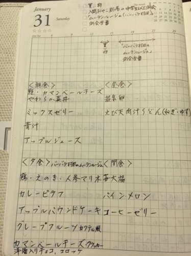 ダイエット食事日記274日目です。今日は、買い物と、入間おやこ劇場の中学生以上例会「バーバラ村田のムーランルージュ」に行くので、黒タートル、黒と臙脂のニット、黒パンツ、黒靴下、チェーンネックレス。寒いので、白のファー付カーディガン、黒ダウンコート、黒裏ボアロングブーツも。グレーのは室内履きです。朝食は、鮭・カマンベール・やわらか菜丼。ミックスゼリー。次女ミンミが、歯医者で親知らずを抜いたのですが、その後図書館に迎えに行き、一緒にスーパーに買い物に行きました。ミンミはクッキーの材料など買ってたのですが、私は駄菓子コーナーでいろいろ買ってしまった・・・ボンタン飴と都昆布は、私が小1でスィミングに通っていた時、母がよくくれたおやつです。今日は食べていませんが、これから少しずつ?食べていきたいです。つい食べ始めると止まらないからなあ・・・昼食は、温泉卵。エビ天肉汁うどん。ねぎ、柚子も。肉汁うどんに付いてきた片岡鶴太郎作の丼に入れて。昼食後、義母と主人と買い物。そこでまた苺大福を買って、食べてしまいました・・・カットフルーツも。パイン、メロン。入間おやこ劇場の中学生以上例会「バーバラ村田のムーランルージュ」の例会は18:30からですが、例会当番なので、16時頃に行って準備の手伝い。出演者、スタッフへの小夜食は、まるでフルコース?みたいなテーブルセッティング。Mさんの旦那さんが作ったコロッケ。私も少しお裾分けしてもらいましたが、美味しかったです。主人にも見習って欲しいなあ・・・バケットを切るのだけ手伝いました。薄く切ったパンには、アボガドソースやクリームチーズソースをのせるそう。MTさんの鶏・えのき・にんじんなどのマリネ。多く作ったからと、私たちもお裾分けをもらいました。これも美味しくて、レシピを教えてもらいたいけど、私には作れないかな・・・Iさんが作ったコンソメスープ。キャベツ、ベーコン、人参、椎茸など具だくさん。Iさんがスタッフの方にスープをよそってあげてました。スープ皿にソーサーも添えて。Kさんが持ってきたスープ皿や皿などの食器がまた素敵で、料理が映えます!共演者のイーガルさんが、スープを飲んでるところ。スタッフとバーバラ村田さん。例会当番との打ち合わせ。私は、司会で最初と最後の言葉を言うことになりました。本番はあがって、「携帯の電源を・・・」と言うのを忘れた・・・広間ではTさんが手作りのピラフやデザートを売ってくれてます。私は、カレーピラフとコーヒーゼリー、アップルパウンドケーキを買って食べました。ムーランカフェでは、シオでの事前交流会にひき続き、「だるま食堂」にコスプレ?というよりバニーガールかな?Aちゃんがイナバウアー?ノンアルコールのカクテル風に、おつまみのカマンベールチーズ、クラッカー、粒胡椒、洋酒入りチョコ。Sさんがデコパージュした厚紙の上にのせてます。SちゃんやJちゃん達と、デコパージュにも挑戦。ナプキンから柄の付いてる紙だけ剥がして切り、ボンドで厚紙に貼ってから、また上にボンドを塗るのです。私のは右から二番目です。2種類のナプキンを使いました。夕焼けが、葉脈のような木に透けて綺麗。チケットはSさんが色違いで作ってくれました。チケットもぎりは若い子達で。ムーランルージュ劇場の客演の方たち。突然頼まれたのにアドリブがきくのは、さすが入間おやこ劇場会員?ロミオ役はYさんの旦那さんだそう。夫婦そろって芸達者ですね。妖しいムードで酔わせるかと思うと、コメディタッチで笑わせてもくれました。