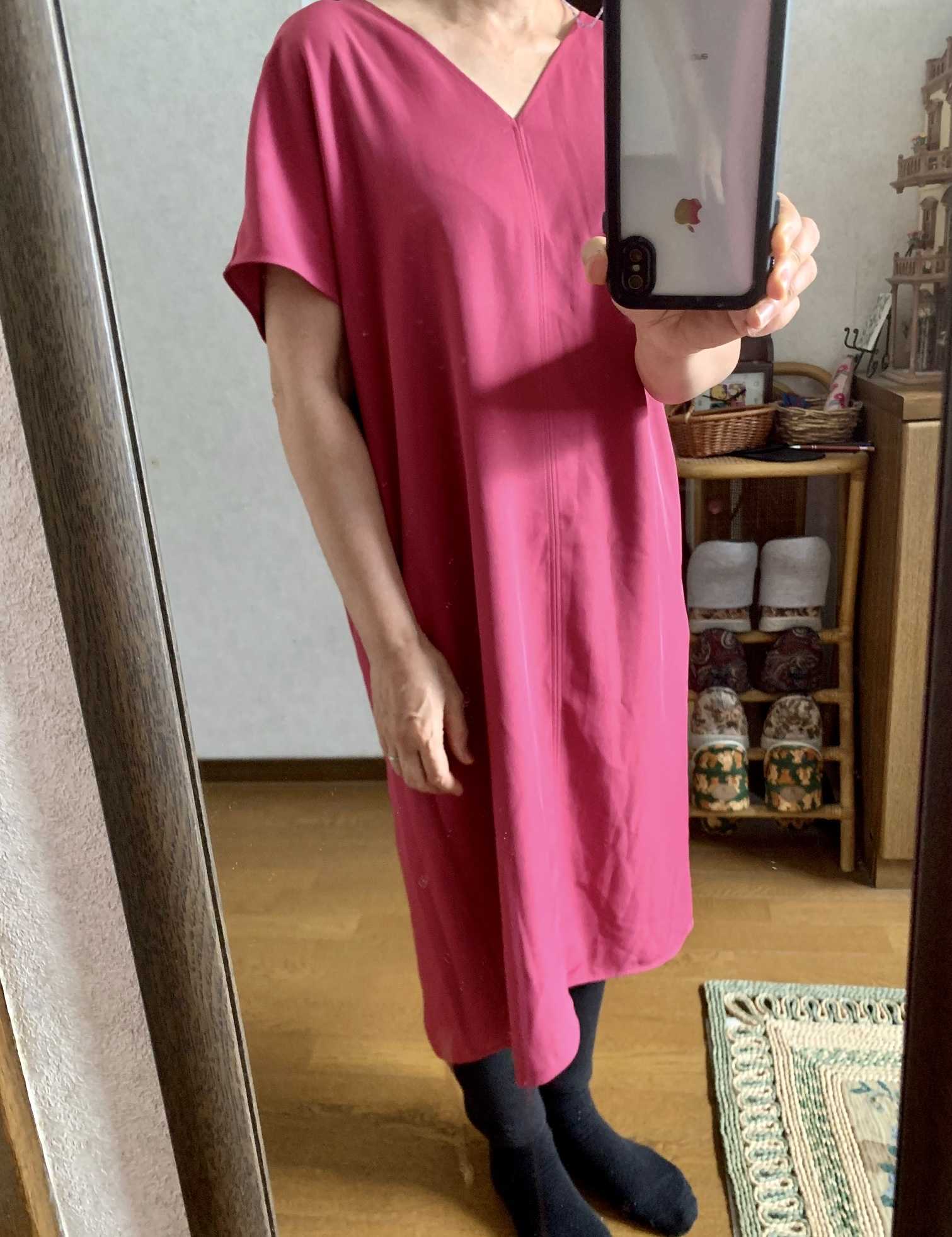 ダイエット食事日記5644日、山形旅行、WTTユースコンテンダープラヤデアロ。マゼンダピンクのワンピース、黒スパッツ、黒靴下、黒紐靴。黄緑のカーディガン。