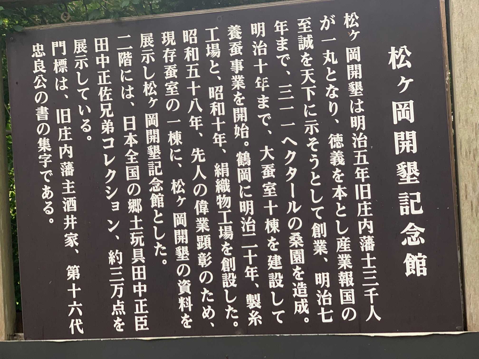松ヶ岡開墾場を見学しました。サムライゆかりのシルク。蚕室。シルクミライ館。4月にオープンしたばかりだそうです。開墾のスピリット。きびそに触れてみよう。繊維として使えなかったそう。繭玉。木枠の中で蛹になる。羽二重と繻子。まわたのまゆ。養蚕、製糸、製織、精錬。石鹸でタンパク質成分セリシンを洗い流す。知らなかった!さわって比べてみよう。精錬前は、タンパク質成分セリシンがついているためゴワゴワしているそう。昔の人はなぜそうなのかよく気づきましたよね!石鹸も無いのにどうやって精錬していたのだろう。キビソを加工して繊維として生かしてる。コロナ禍で、シルクマスクが売れたらしい。クッションカバー。養蚕おカイコさま(展示飼育)は、6月と9月です。カイコ棚。シルクガールズプロジェクト。鶴岡シルクを素材としたドレスの製作・発表、学習発表会を通して、、、ウクライナ人道危機救援金。松ヶ岡本陣。