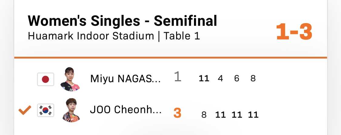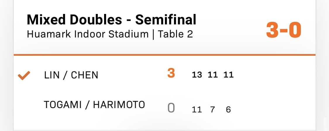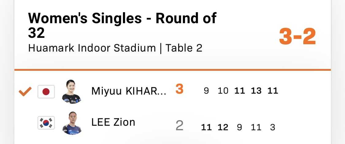 WTTスターコンテンダーバンコクスーパー14歳・張本美和がヨーロッパ2冠女王をストレートで下す!8強進出【卓球 WTTスターコンテンダー】平野美宇が3回戦で敗退。アメリカのエースにまたも敗れる【卓球 WTTスターコンテンダー】長﨑美柚が『Wみゆう』対決で木原美悠に完勝!ベスト8進出【卓球 WTTスターコンテンダー】戸上隼輔・張本美和 世界卓球中国代表同士のペアに敗戦。決勝進出ならず【卓球 WTTスターコンテンダー】13:00 table2 混合W-準決勝 戸上 隼輔/張本 美和 0-3 林高遠/陳幸同(中国)13:35 table2 女子W-準決勝 長﨑 美柚/木原 美悠 2-3 鄭怡静/李昱諄(台湾)平野美宇が3回戦で敗退。アメリカのエースにまたも敗れる【卓球 WTTスターコンテンダー】14:10 table2 女子S-3回戦 平野 美宇WR20 0-3 リリー・チャン(アメリカ)WR24長﨑美柚が『Wみゆう』対決で木原美悠に完勝!ベスト8進出【卓球 WTTスターコンテンダー】14:45 table3 女子S-3回戦 木原 美悠WR19 0-3 長﨑 美柚WR35スーパー14歳・張本美和がヨーロッパ2冠女王をストレートで下す!8強進出【卓球 WTTスターコンテンダー】15:30 table1 女子S-3回戦 張本 美和WR29 3-0 ソフィア・ポルカノバ(ポーランド)WR12