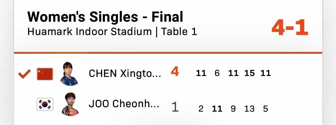 WTT スターコンテンダーバンコク林高遠、陳幸同が3冠 林高遠は1時間越えの激戦制し男子単V<卓球・WTTスターコンテンダーバンコク2023>優勝 全員中国・・・やはり強いなあ・・・男子シングルス #林高遠女子シングルス #陳幸同 男子ダブルス 林高遠/#林詩棟 女子ダブルス 陳幸同/#蒯曼(中国)日本人が決勝に誰も居ないのが寂しい・・・table1 女子S-決勝 陳幸同(中国)WR6 VS チュ・チョンヒ(韓国)WR 38張本美和・長﨑美柚を破ったチョンヒに勝ってもらいたかった。ラリーの応酬は見ごたえあったし、もしかたらと思ったのですが、4ゲームのジュースで負けて力尽きてしまったかな。またTリーグ来たら、シングルスも出るのだろうか。今まではダブルスしか出てないなんてもったいないよね。陳幸同は流石に強い。table1 男子S-決勝 林高遠(中国)WR10 4-3 チャン・ウジン(韓国)WR1721:30 table1 女子W-決勝 鄭怡静/李昱諄(台湾) 0ー3 陳幸同/蒯曼(中国)22:05 table1 男子W-決勝 チャン・ウジン/イム・ジョンフン(韓国) 0-3 林高遠/林詩棟(中国)
