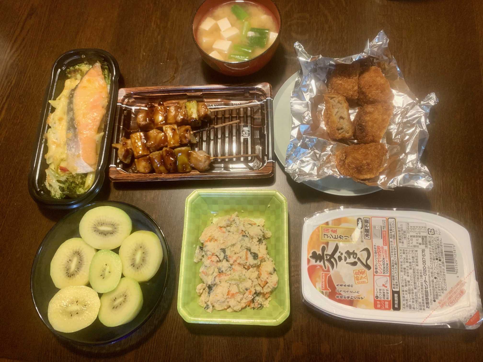 夕食は、メンチカツ、焼き鳥・ねぎま、鮭・チーズ・マカロニ・ブロッコリー、卯の花、麦ごはん、豆腐・ネギの味噌汁、ゴールドキウイ。大学芋。体重は、夕食後・入浴前58.2kg。2日前より0.2kg増えた。体脂肪率は、35.1%。入浴後、変わらず。33.5%。