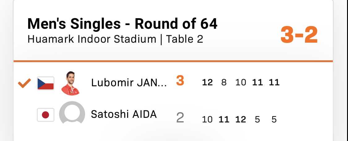 WTTスターコンテンダーバンコク#小塩遥菜 #田中佑汰 #戸上隼輔 #長﨑美柚/#木原美悠 #戸上隼輔/#張本美和 #長崎美柚 #笹尾明日香 2回戦進出 #及川瑞基 #吉村真晴 #英田理志 1回戦敗退13:10 table2 男子S-1回戦 英田 理志WR119 2-3 Lubomir JANCARIK(チェコ)WR11513:10 table3 女子S-1回戦 笹尾 明日香WR80 3-2 Minhyung JEE(オーストラリア)WR3914:20 table1 男子W-1回戦 張本 智和/篠塚 大登 (棄権)林高遠/林詩棟(中国)14:20 table3 女子S-1回戦 長﨑 美柚WR35 3-2 シャオ・マリア(スペイン)WR79 15:30 table1 混合W-1回戦 戸上 隼輔/張本 美和 3-0 イオネスク/スッチ(ルーマニア)16:45 table2 女子W-1回戦長﨑 美柚/木原 美悠 3-0 リウ・ヤンズー/Minhyung JEE(オーストラリア)17:15 table1 男子S-1回戦 吉村 真晴WR117 2-3 エマニュエル・ルベッソン (フランス)WR10018:30 table2 男子S-1回戦 戸上 隼輔WR48 3-1 薛飛(中国)WR6719:05 table4 男子S-1回戦 及川 瑞基WR65 1-3 田中 佑汰WR6621:35 table1 女子S-1回戦 小塩 遥菜WR44 3-0 斉菲(中国)WR73