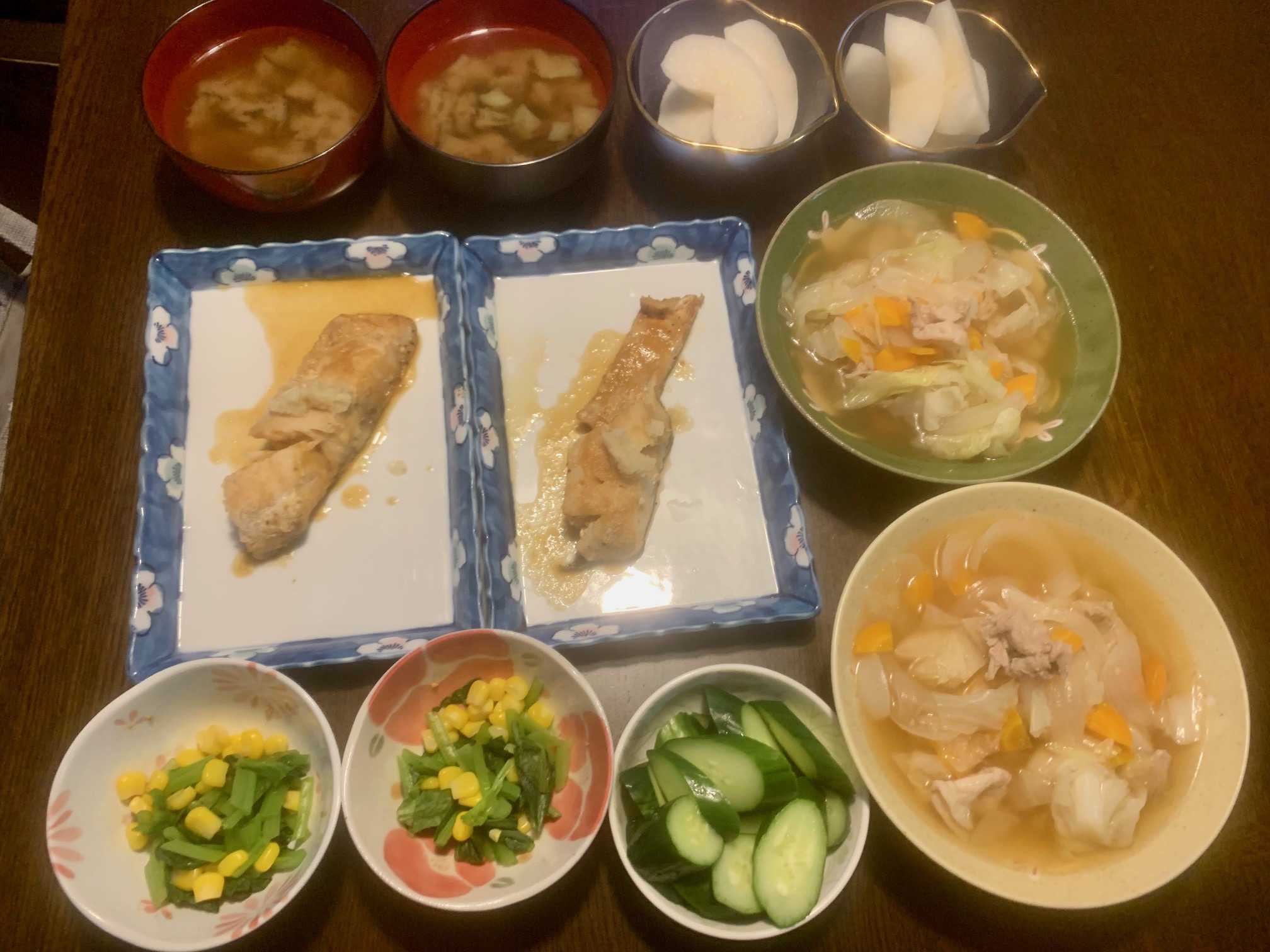 夕食は、真鱈の生姜醤油掛け、小松菜・コーン、胡瓜の糠漬け、豚・玉ねぎ・キャベツ・人参煮、茄子の味噌汁、梨。体重は、夕食後・入浴前57.7kg。4日前から0.8kg減った!体脂肪率は、32.7%。入浴後、57.6kg。31.5%。