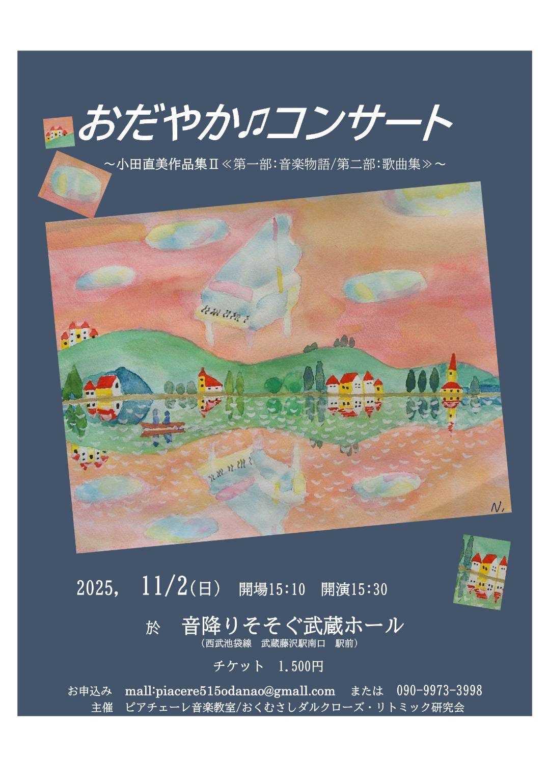 小田直美作品集の楽譜・CD・コンサートちらしが届いた。届きました!ありがとうございます😊2025年11月20日XML 小田直美先生の口座に、小田直美作品集2の楽譜・コピー代振り込んだ。楽しみに待っていたので嬉しいです。早速、楽譜見て「夕焼けの絵」を小さな声で歌いました。うちは、大声出すと、以前無言電話がかかってきたので😅練習も車内でしてます。「夕焼けの絵」はメロディーも素敵ですが、歌詞がジンときます。お嬢さんが小3の時の言葉から発想したというのが、印象的だったのです。私も、昔やはり娘の詩に曲を付けたことがありました。「ありがとう」という詩でした。私風情がおこがましいですが😅懐かしいです次のレッスンに持参しますね。以前パステル音楽館で、金田先生が歌われて、素敵だと思い、一度楽譜をいただいて、田中先生のレッスンに持参して、歌ったことがありました。発表会で歌うには許可もらわないと、と言われ、躊躇してしまったのですよね。今回も、まだお恥ずかしいですが、出来たら歌わせていただきたいです。まだ、次回の発表会がいつになるかもわからず、とりあえず候補曲を何曲か持参するということになりますが。発表会で歌うことになりましたら、ご報告しますね。よろしくお願いします🙇然、待ち受けのシャッフルした風景写真が、夕焼けになったw