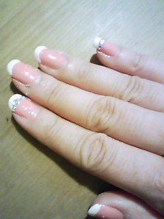 左右の手の指二本ずつ、境目にストーンをのせてます。