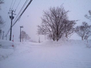 ゲレンデを歩くのは無理だから、車道を歩いて行って下さい。」と