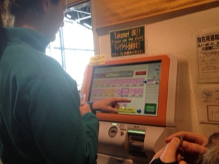 食券の自動販売機も、表示を日本語と英語に切り替えられる。
