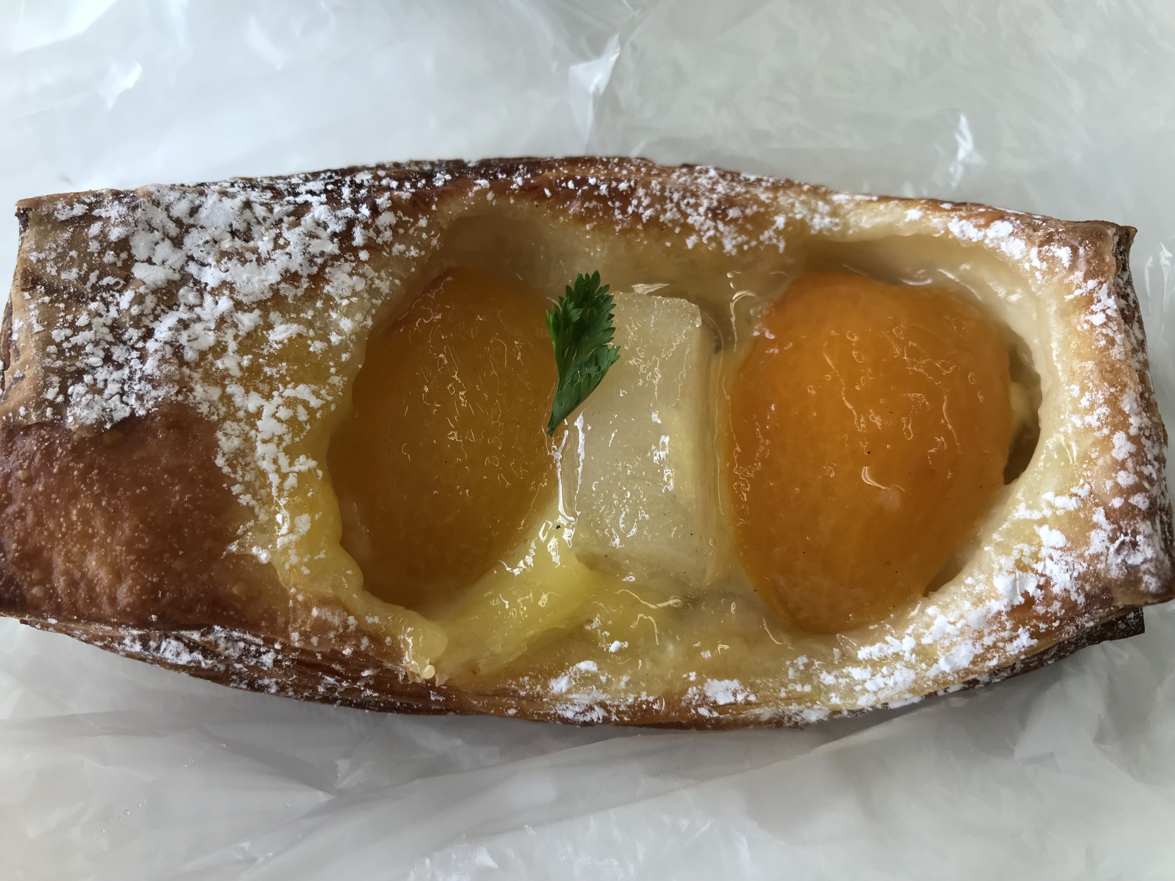 私は洋ナシと杏のパイ。