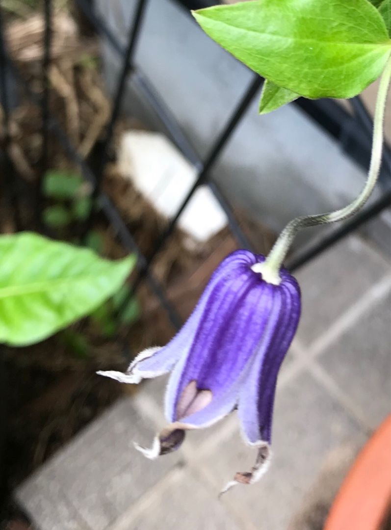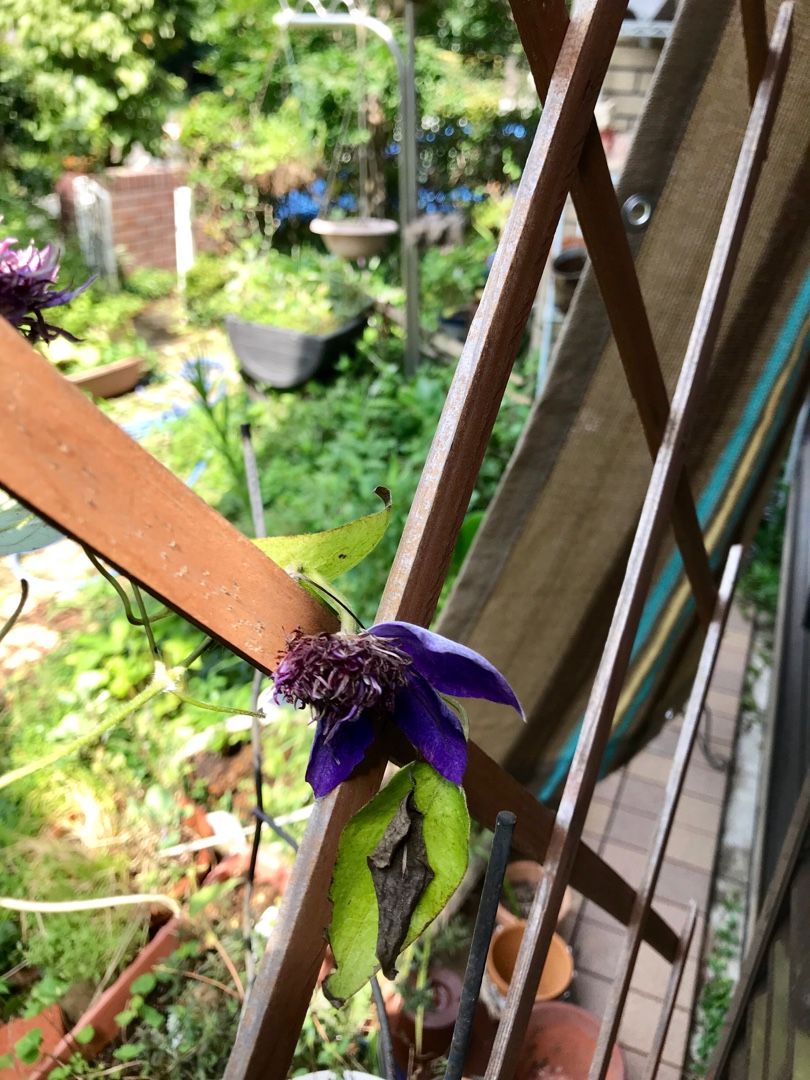 クレマチス・マルチブルー。テトリスの裏側で咲いてしまった・・・