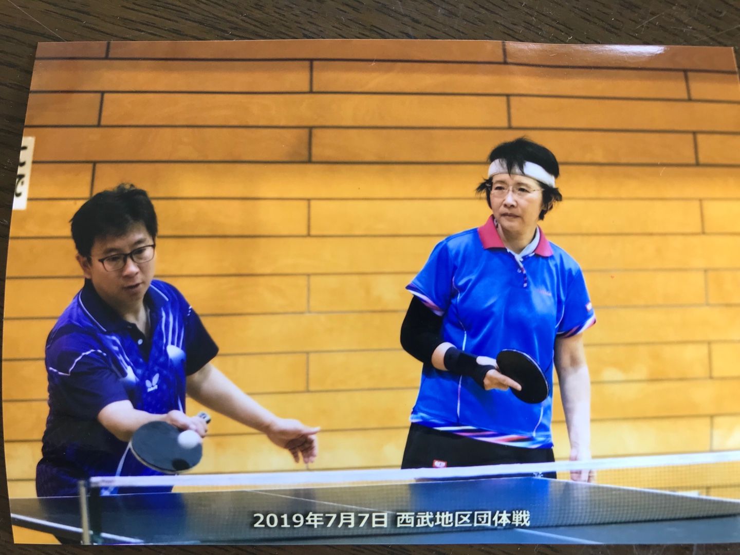 地区対抗戦で、同じチームのYさんとダブルスを組んだ時の写真。傍観してるみたいだなあ・・・