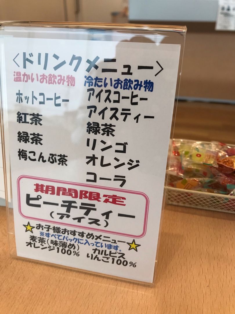 期間限定のピーチティー(アイス)をお願いしました。お菓子も。
