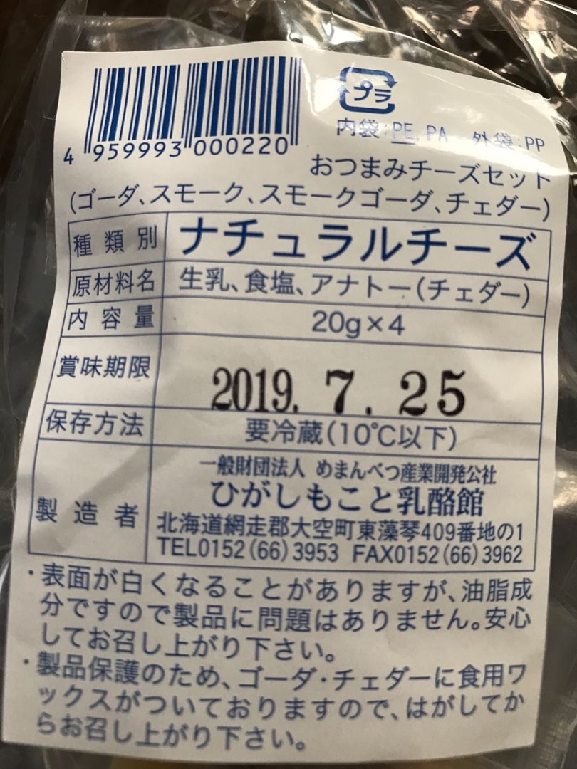 チェダーチーズだけ。食用ワックスも一緒に食べてしまった・・・