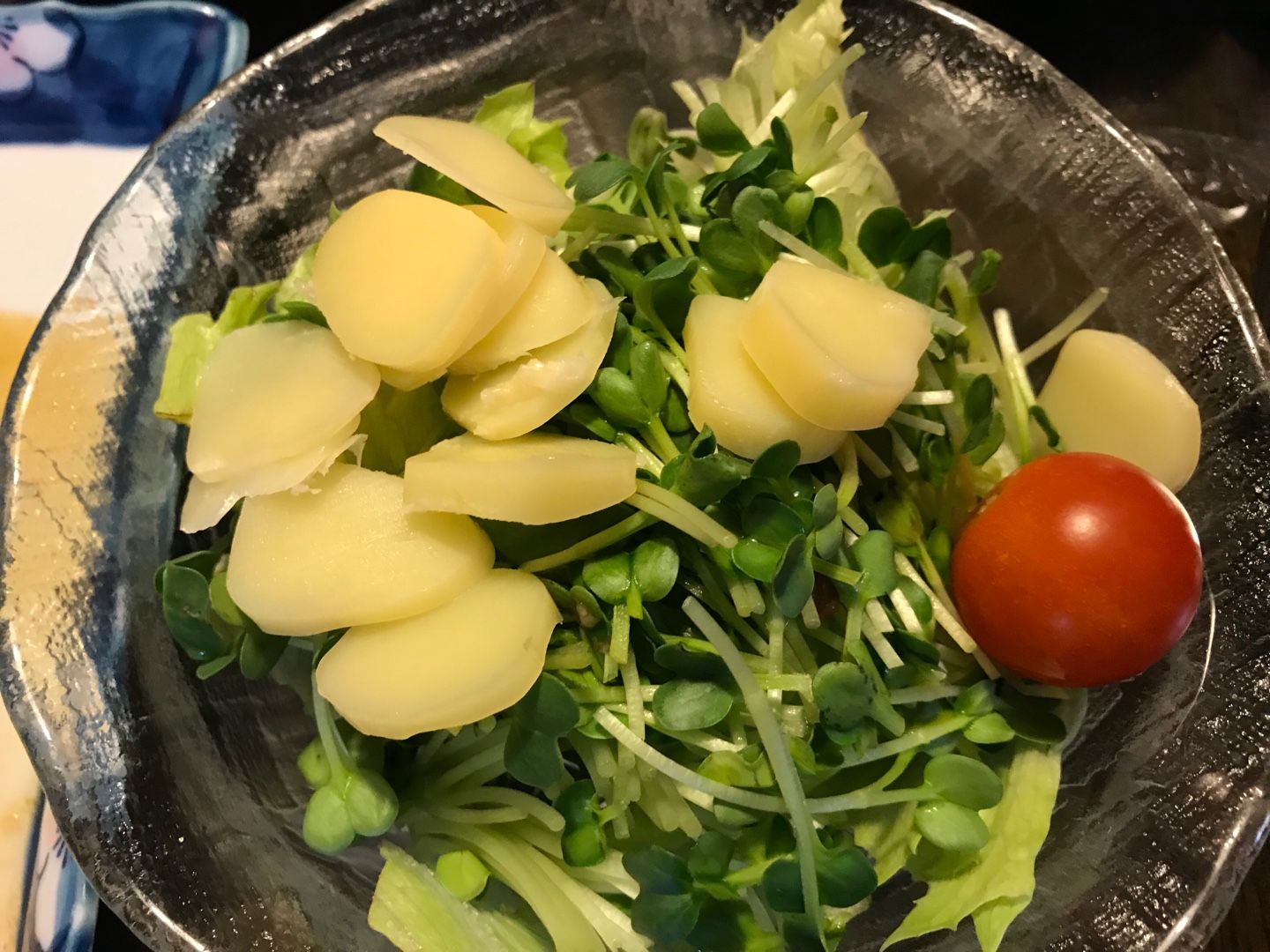 賞味期限が過ぎて食べても平気だったので、夕食のサラダにスモークチーズを使いました。