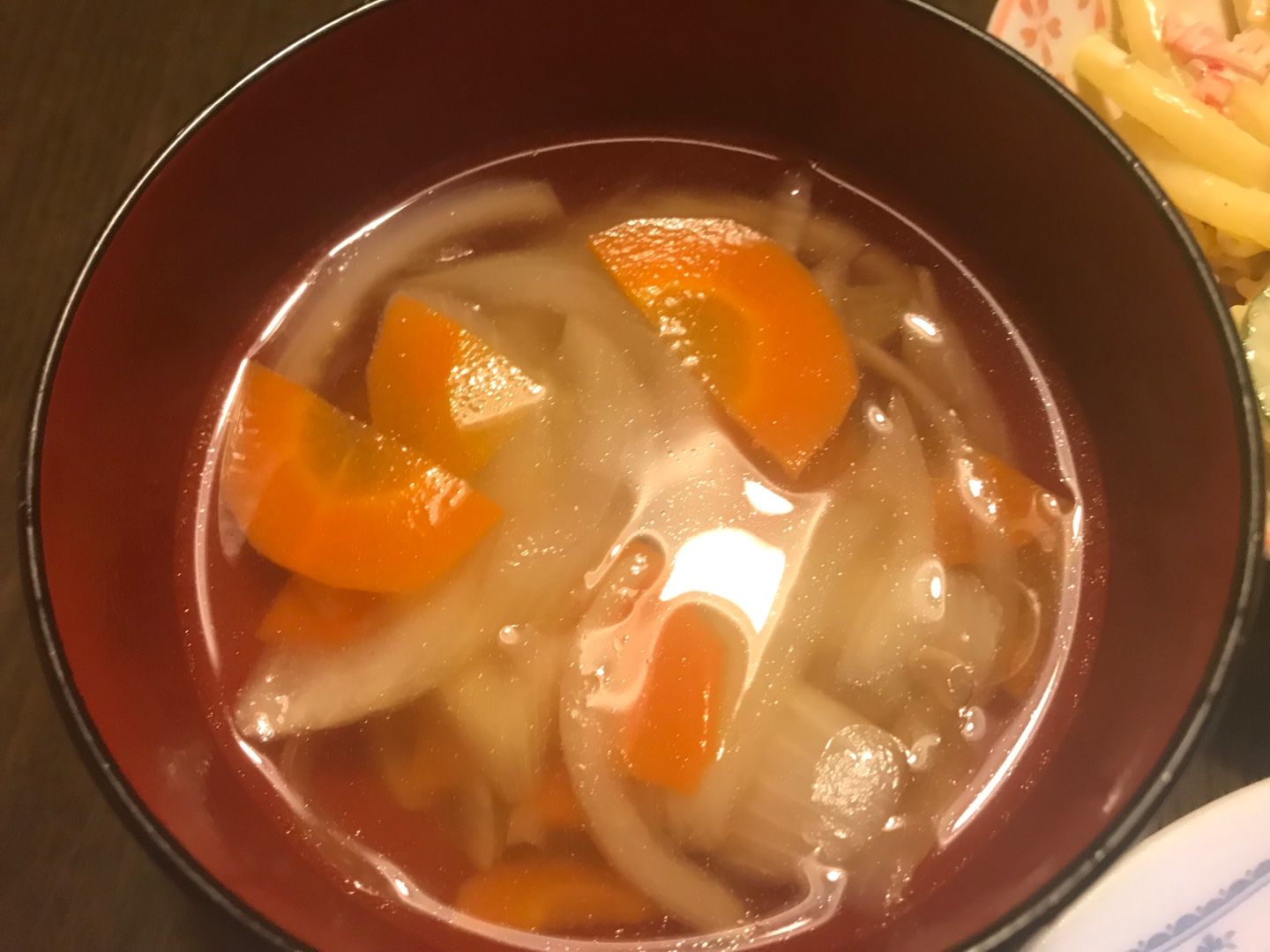 人参・玉葱の味噌汁。