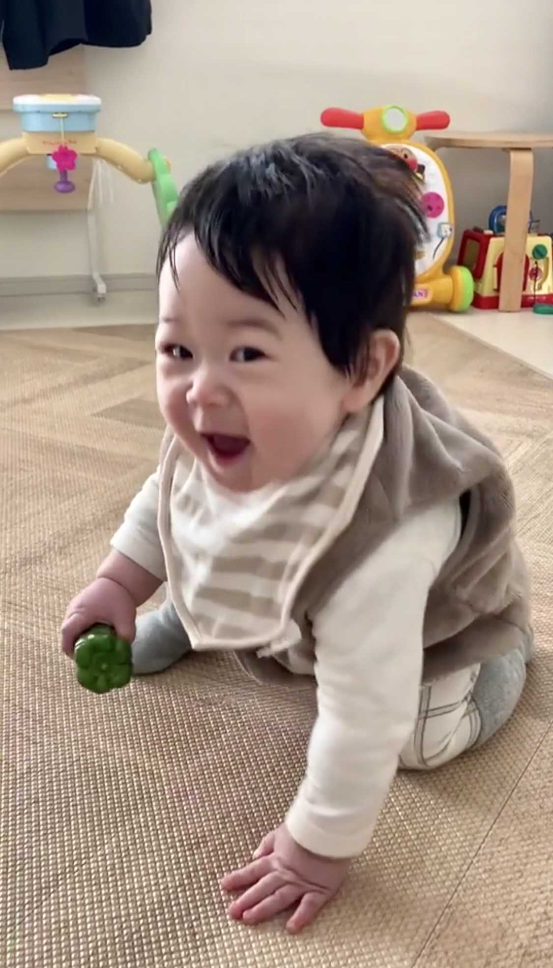 大好きなママ目がけて突進。