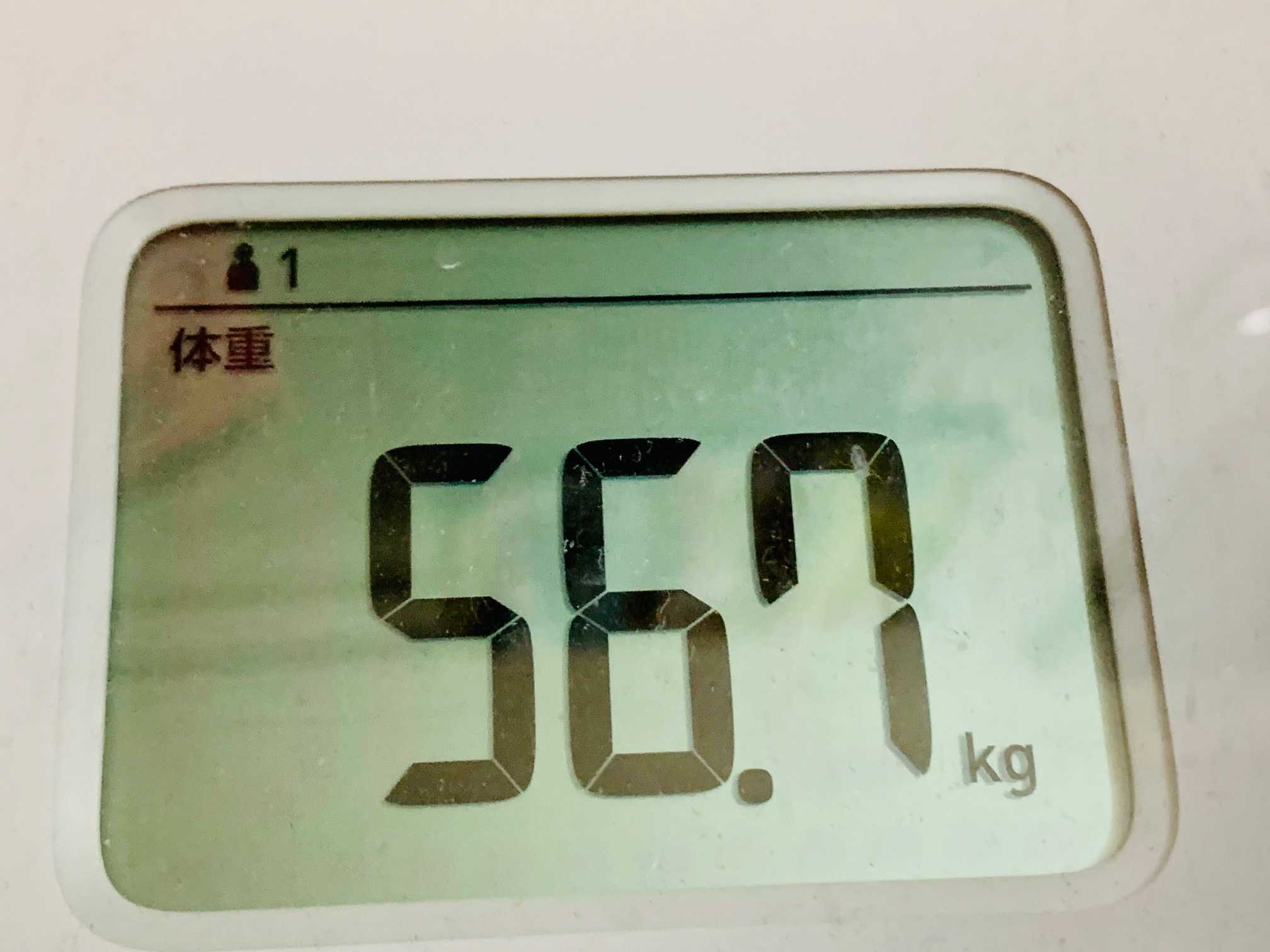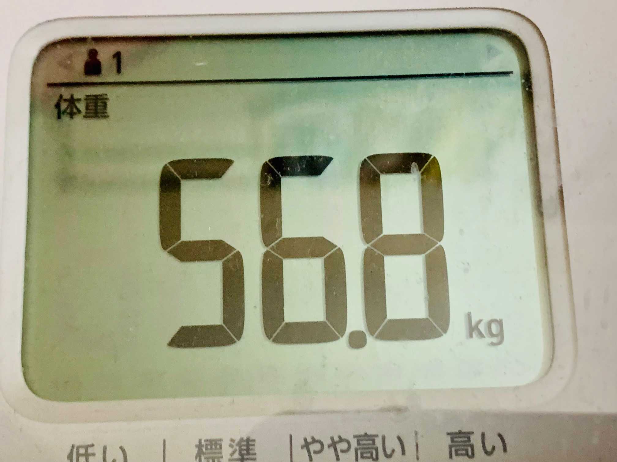 体重は、夕食後・入浴前56.8kg。2日前より0.7kg減った!