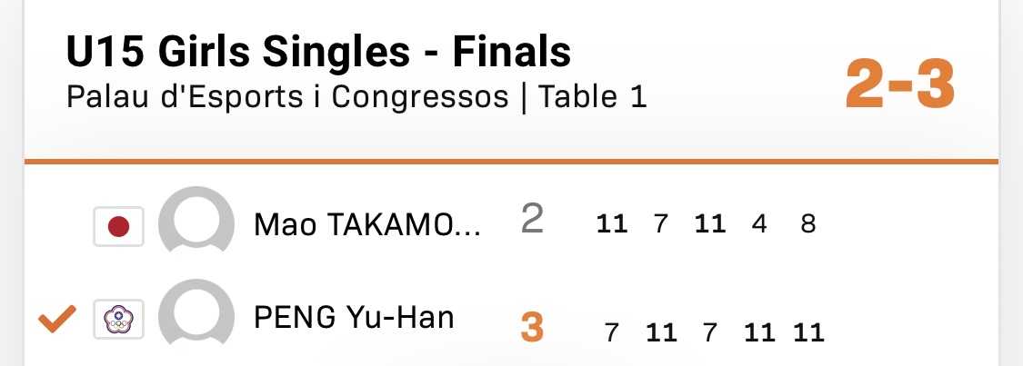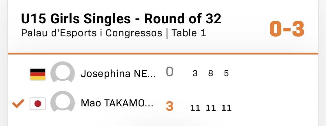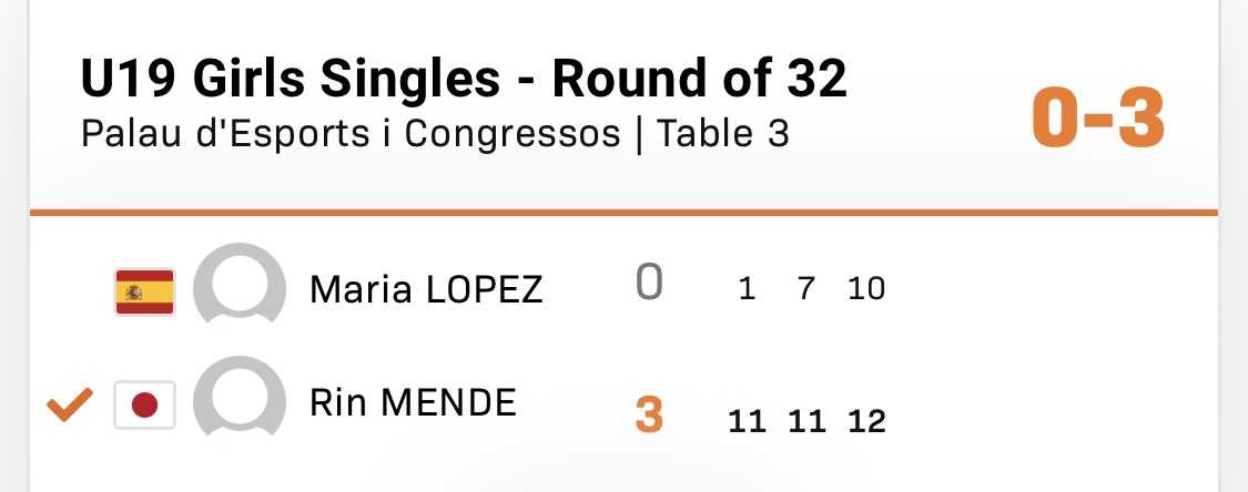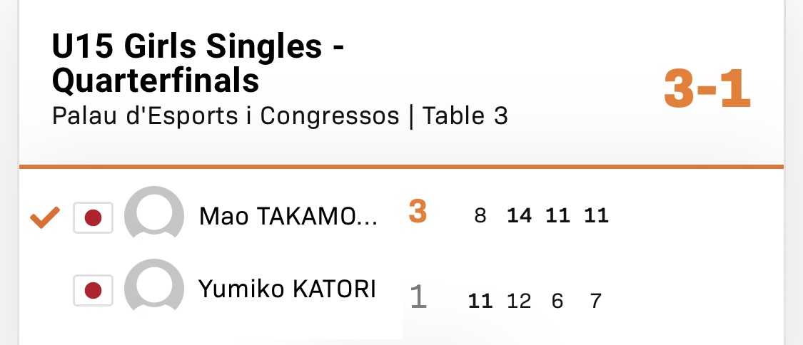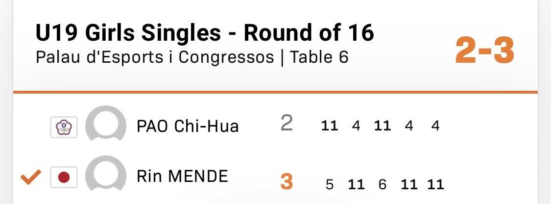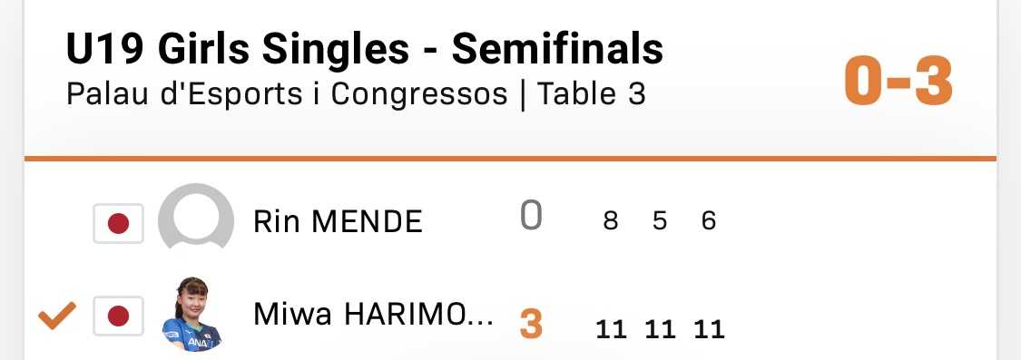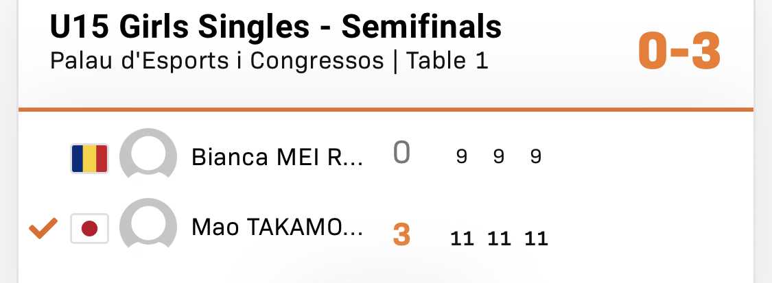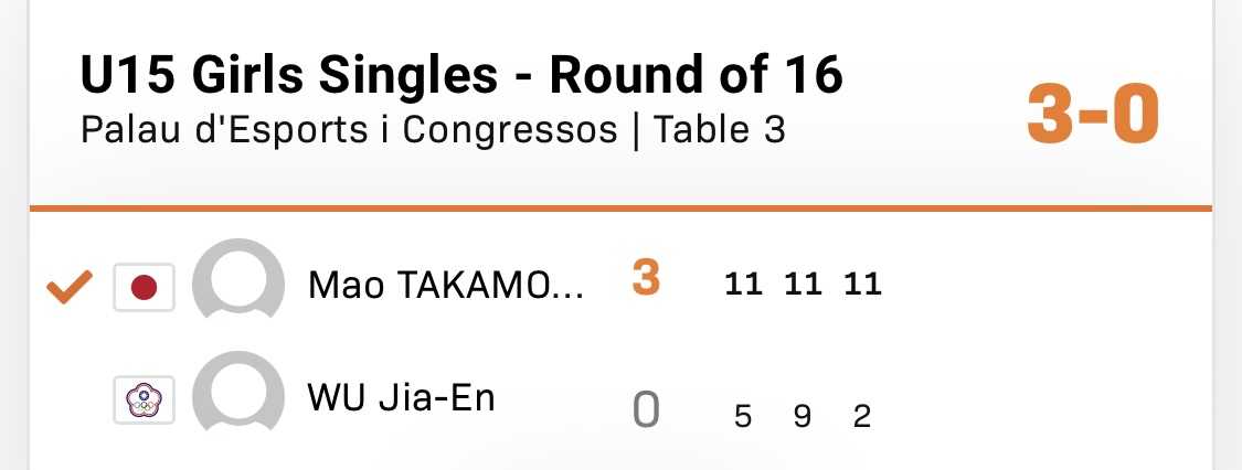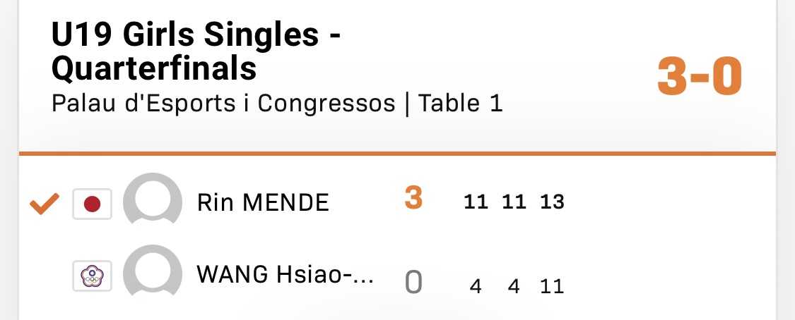 ・面手凛(14):WR174 0-3 張本美和(13):WR7