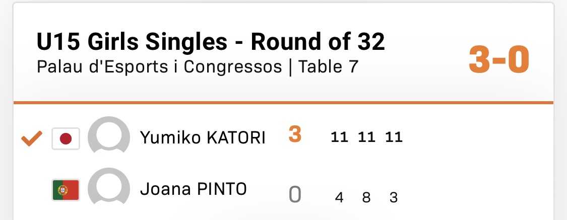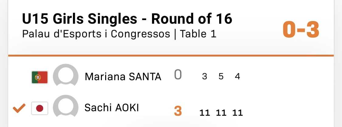 ・Mariana SANTA(14・ポルトガル):WR99 0- 3