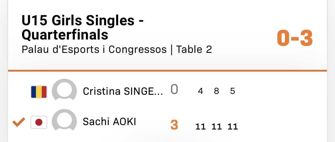 ・Cristina SINGEORZAN(15・ルーマニア):WR198 0-3 青木咲智(15):WR142