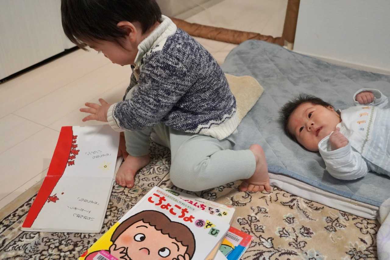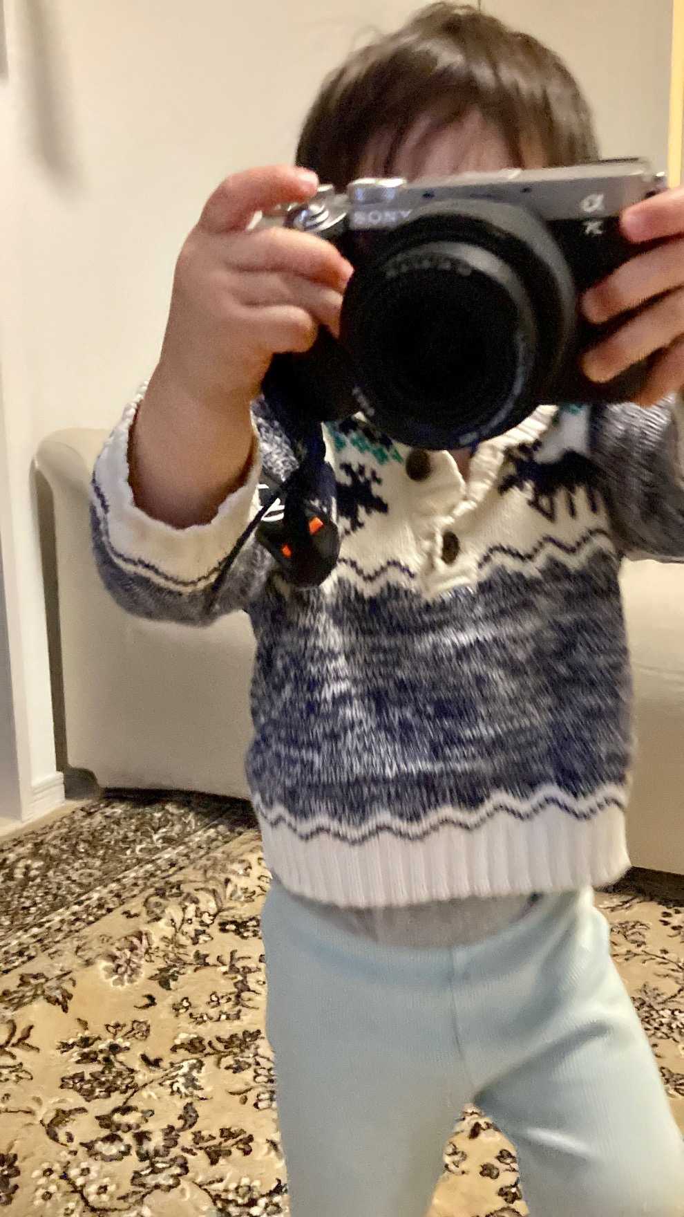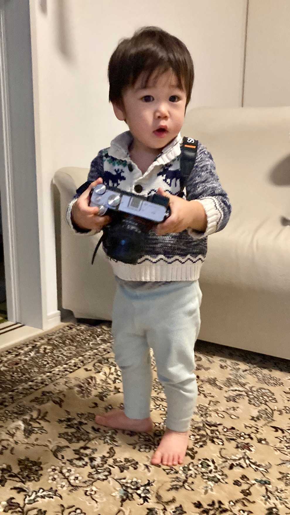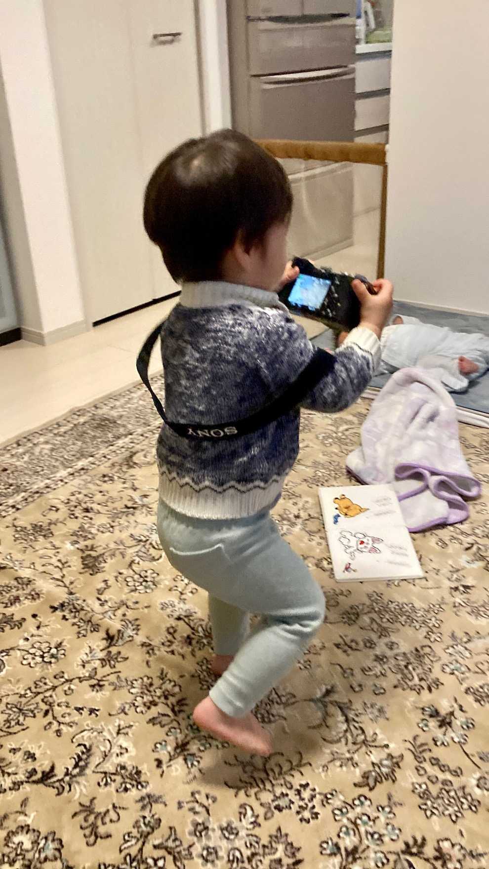 カメラが気になる兄。壊されちゃうと思って渡したくなかったのですが、少しだけチャレンジしてみました。