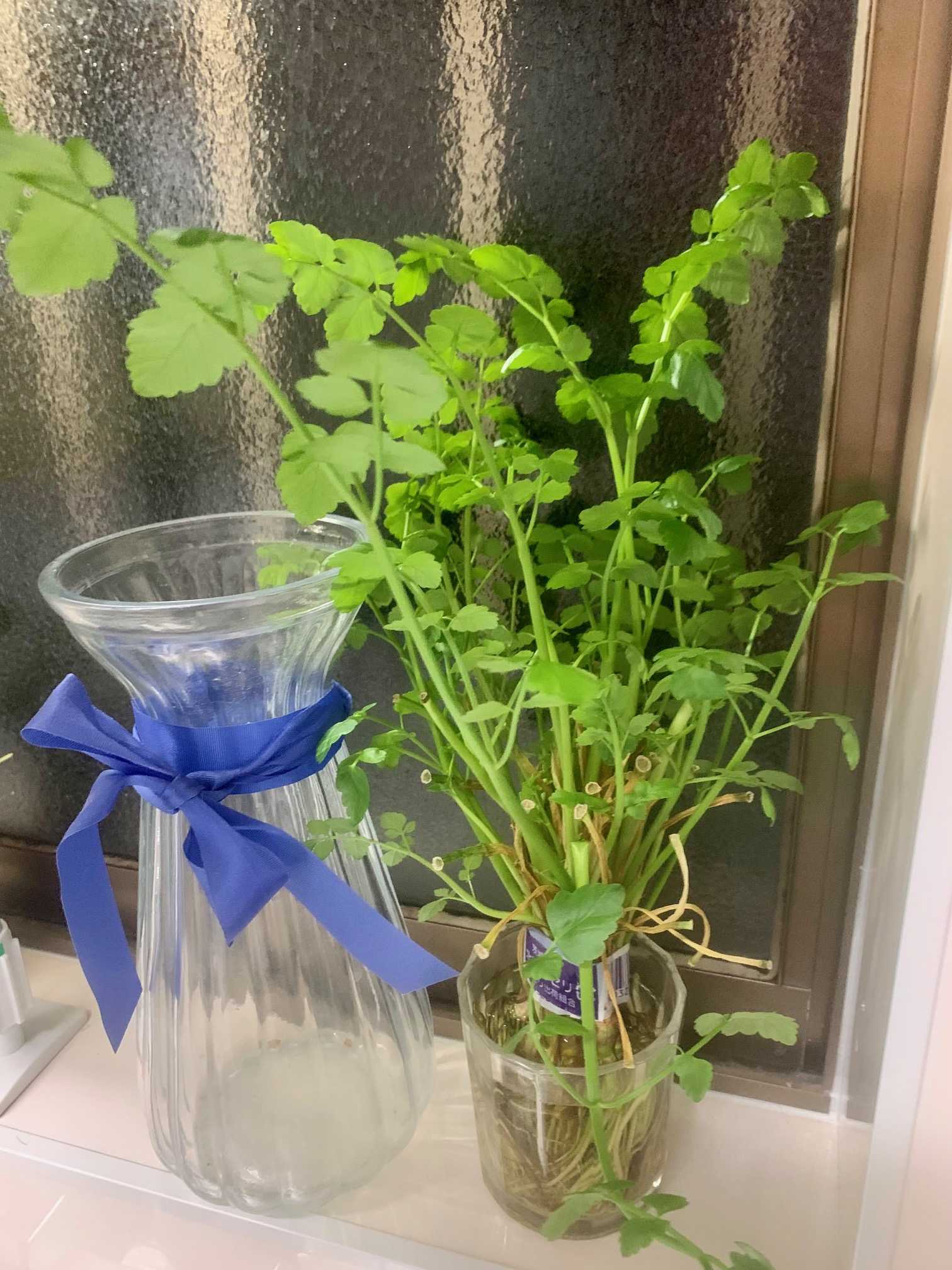 Rさんからもらった根付きネギ。下部は切って植える予定。葉は酢味噌和えでヌタにしました。
