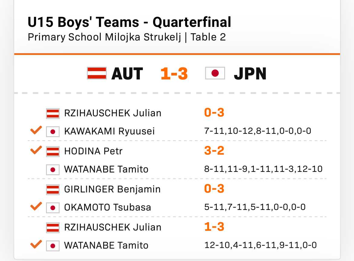| 27(月)1:00 | T | U15男子T-準々決勝 | 日本 VS 〇 |
