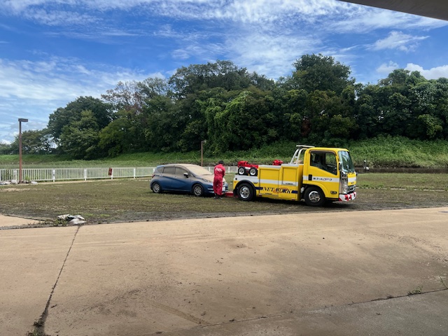 保険のロードサービスに連絡しました。水没車のレッカー移動が出来るようになったので、