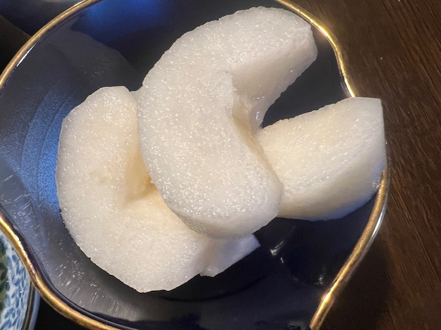 Rさんからもらった根付きネギ。下部は切って植える予定。葉は酢味噌和えでヌタにしました。