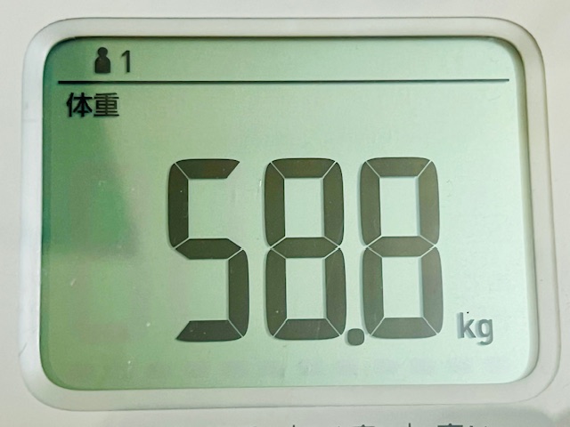 体重は、夕食後・入浴前58.8kg。2日前から0.4kg減った!