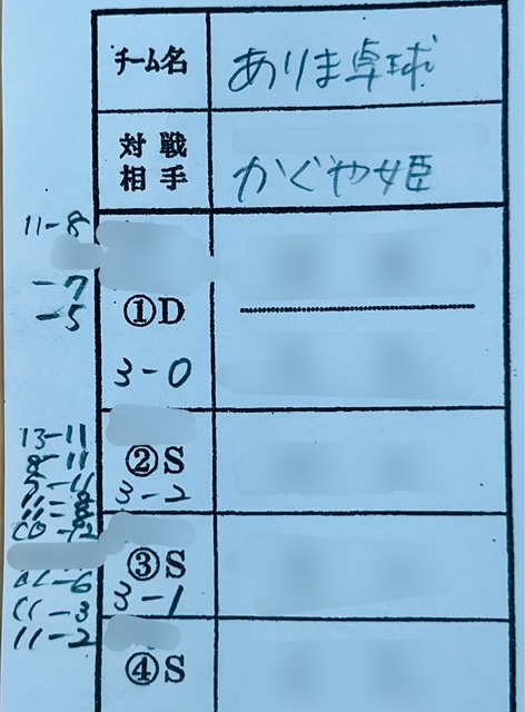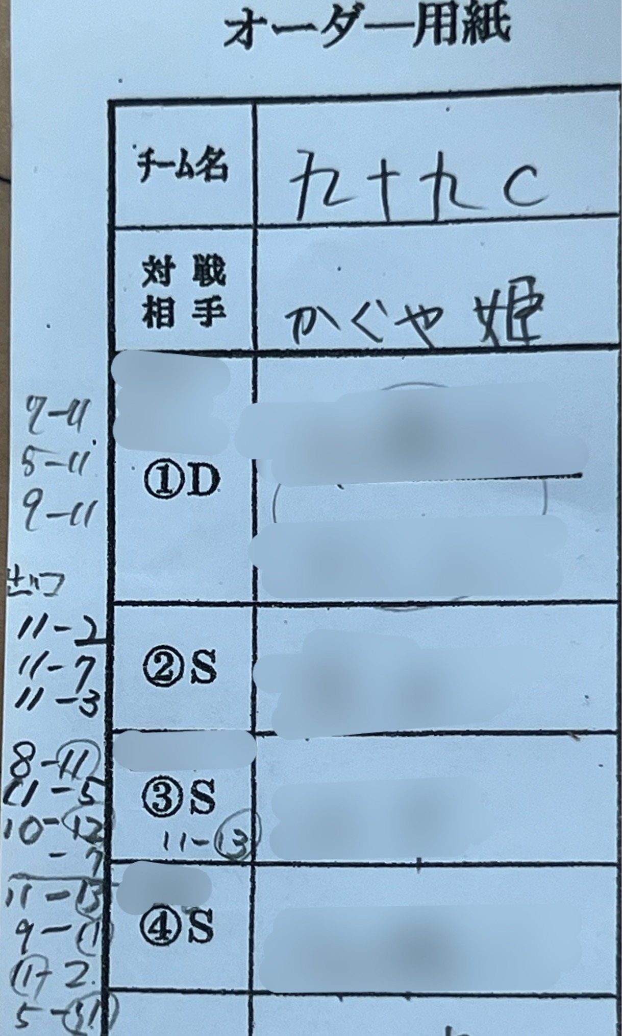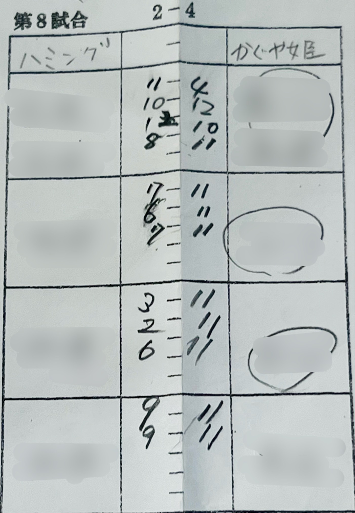 Rさん・私 3-0 Mさん(左利き)Oさん 裏裏・attack8裏