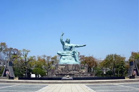 平和公園にはローマの神様のような平和祈念像が雄々しくこの土地を守るように建てられている。昔訪れた時もこの神の愛と仏の慈悲を象徴し、原爆の脅威を垂直に揚げた右手で、平和を水平に伸ばした左手で示すこの祈念像の前で写真を撮った。あの時は夏休みで人が多く訪れていたが、4月中旬の平日に訪れている人はまだらだった。あたたかい太陽が眩しく、公園内のつつじが綺麗に咲きだし、木々が青々としていた。