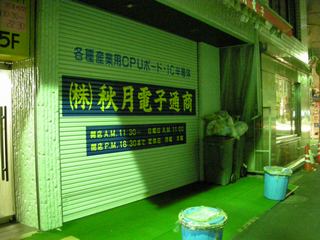話題のゲーム機販売前夜、秋葉原に出てみた。やっぱり人が多い。秋月電子はご覧のとおりいつもどおりだ。多分、何時の夜撮っても「今日撮った」と言える位変化がない。店構えとは反対に、このお店の部品の変化は激しい。時々スポット品として出てくる部品の中に「あれ?そう言えば 1 年前出ていたあの機械の部品だよな?」と思うことがある。お祭り騒ぎの行列の先で買われた機械の部品、いつか少し離れた秋葉原の界隈に来るのだろうか。そして、ごった返す人ごみの足元に並ぶのだろうか。